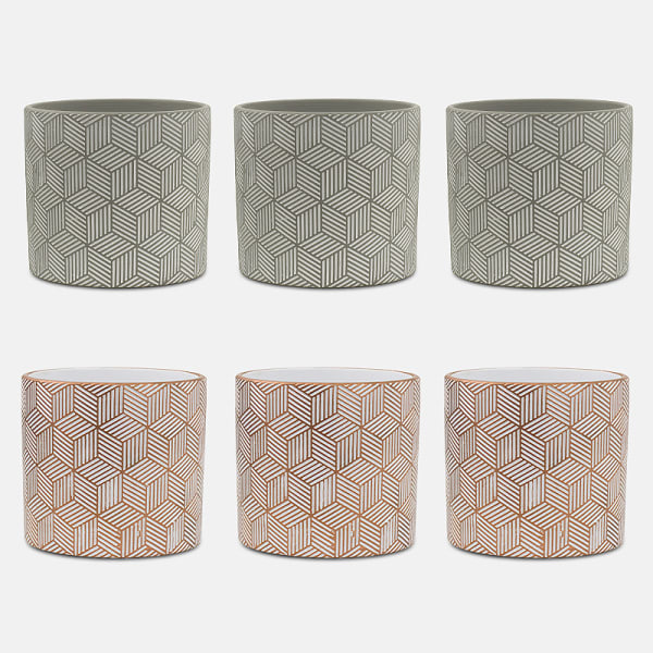 Κεραμικά κασπώ σε συσκευασία των 6 τεμαχίων σε τρία χρώματα κατάλληλλα για φυτά, ανθοσυνθέσεις, στολισμούς γάμων & είδη δώρων.