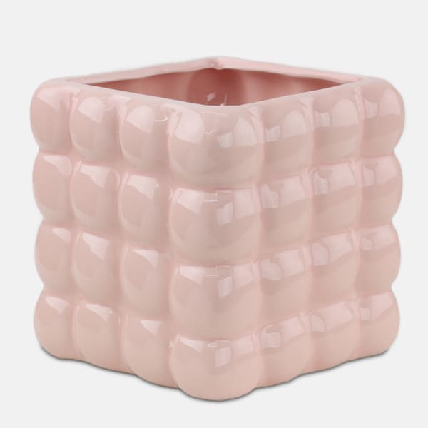 Κεραμικός κύβος σε ρόζ χρώμα κατάλληλλο για μίνι ορχιδέα και παχύφυτα.